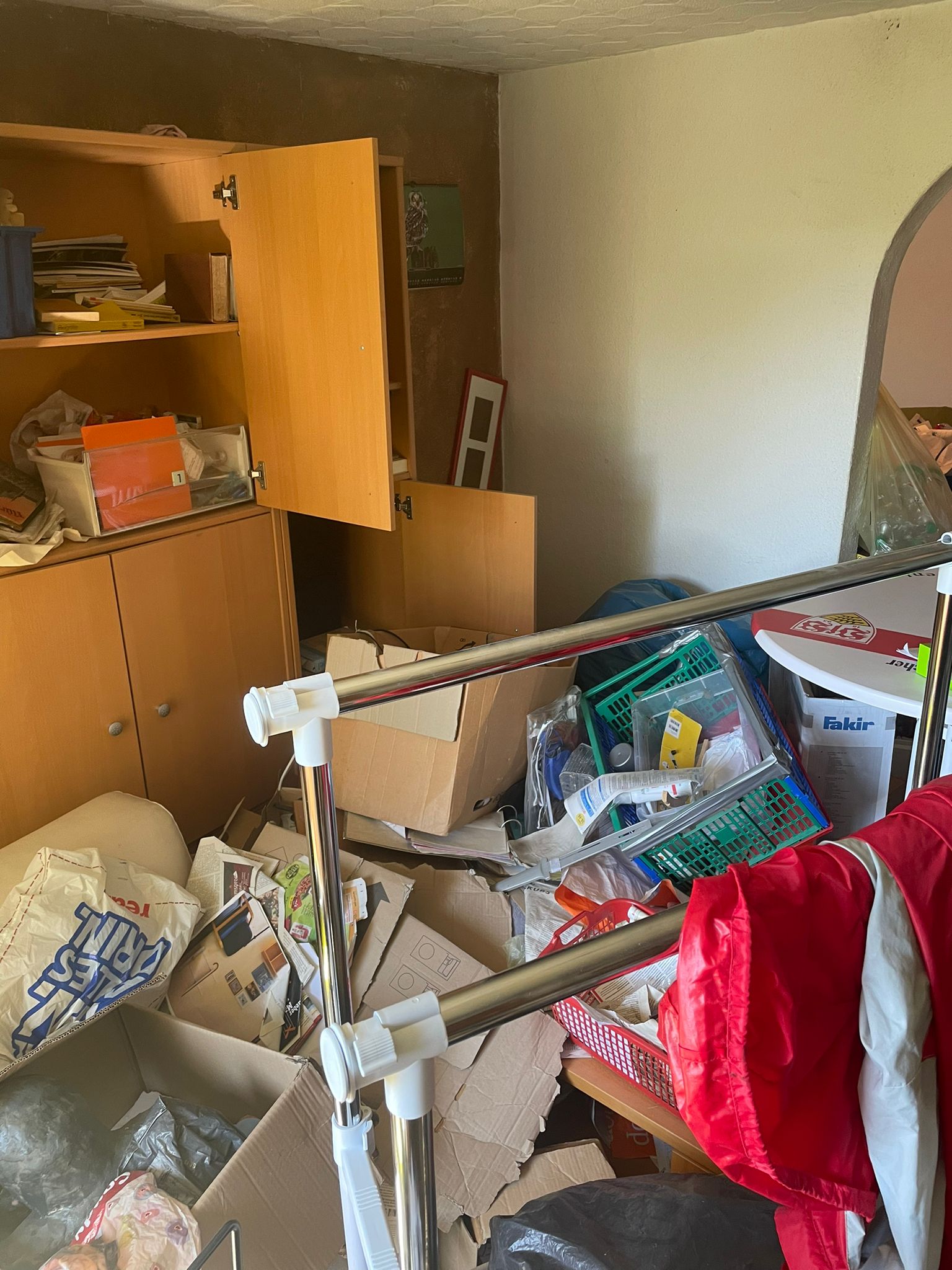 Gefahrstoffe (Farben/Lacke/Öle/Batterien) entsorgen wir vorschriftsgemäß über Partner. Asbest-/KMF-Sanierungen und statische Eingriffe führen wir nicht aus – gern empfehlen wir Fachbetriebe. Geruchsneutralisation/Grundreinigung auf Wunsch.